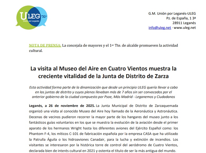 Esta actividad forma parte de la dinamización que desde un principio ULEG quería llevar a cabo en las juntas de distrito y cuyos plenos llevaban más de 7 años sin ser convocados por el anterior gobierno de la ciudad compuesto por Psoe, Más Madrid - Leganemos y Ciudadanos