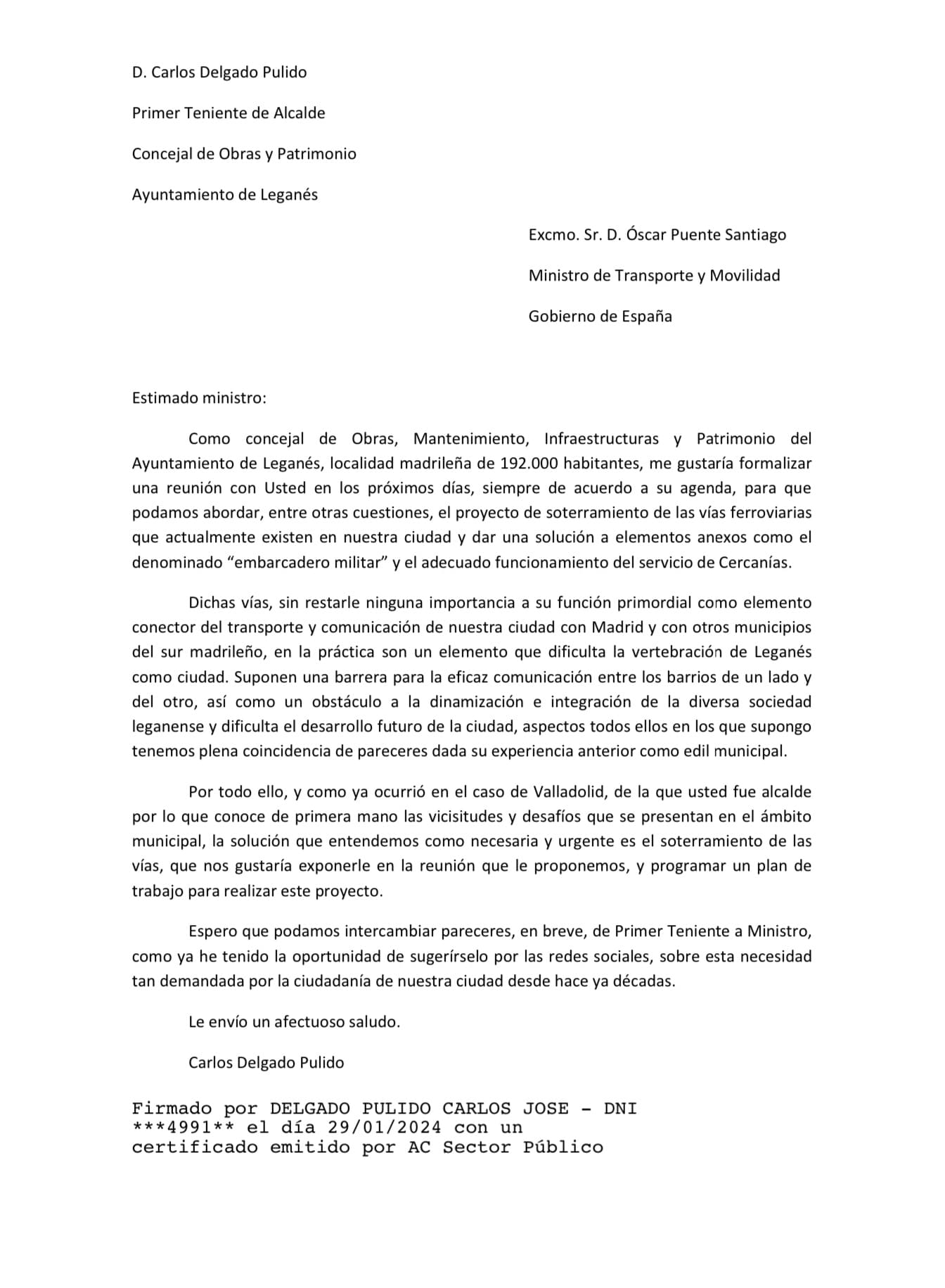 Breve nota biográfica: Carlos Delgado Pulido es el 1er Teniente de Alcalde del ayuntamiento de Leganés, coPortavoz del Gobierno Local, concejal de Obras, Mantenimiento, Infraestructuras, Patrimonio y Presidente de la Junta de Distrito de Zarzaquemada. Nacido en 1977. Casado y padre de tres hijos. Criado en el barrio de Santos y Batallas, ha residido en Zarza y vive en San Nicasio desde 2009. Estudió en el colegio público Jacinto Benavente, en el IES Butarque. Licenciado en Derecho y Ciencias Políticas y de la Administración por la Universidad Carlos III, con Premio Extraordinario. También cuenta con sendos máster en Periodismo y en Administración y Dirección de Empresas.